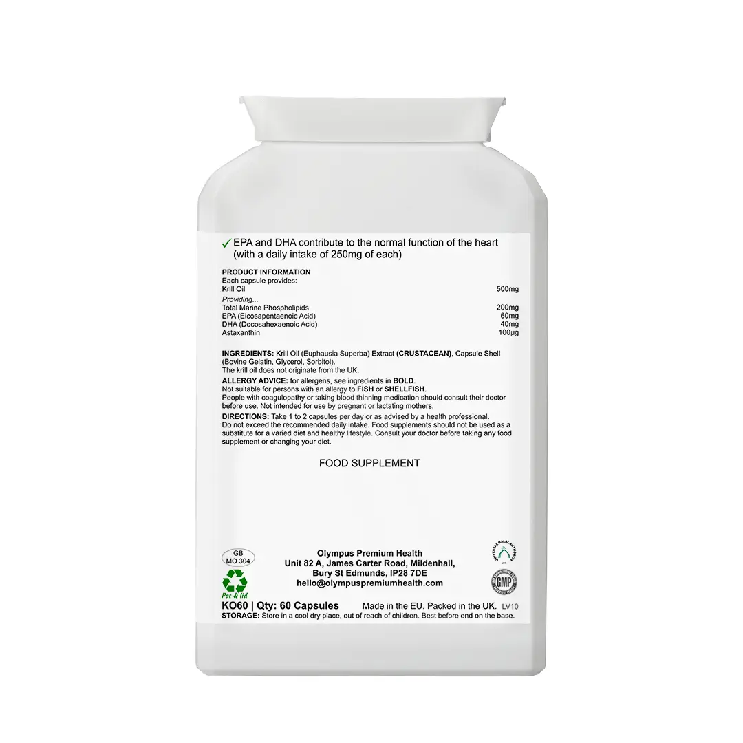 - Antarctic-sourced krill oil delivers superior omega-3 absorption.